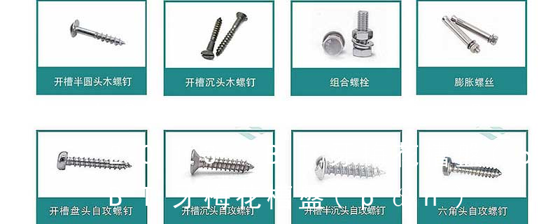 (鐵板牙自攻螺絲) B-2: Plastic Tapping Screw. (塑膠用,自攻螺絲) C: Wooden Screw : 木工螺絲 D: Drywall Screw :水泥墻螺絲 E: Self Drilling Screws鉆尾螺絲(不銹鋼鉆尾螺絲,復(fù)合材料鉆尾螺絲) F:膨脹螺絲,四片膨脹螺絲又