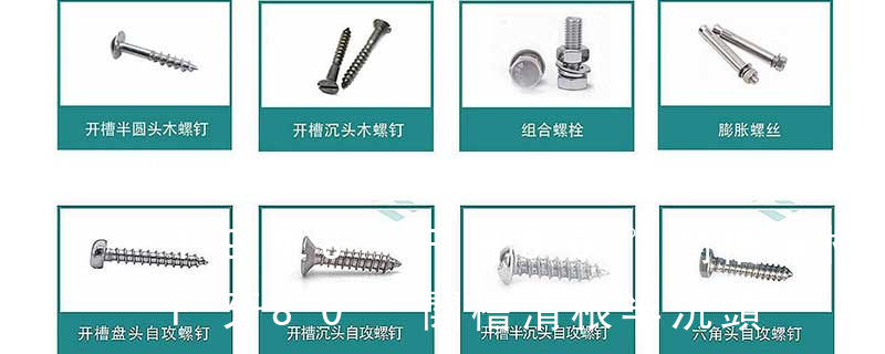 (鐵板牙自攻螺絲) B-2: Plastic Tapping Screw. (塑膠用,自攻螺絲) C: Wooden Screw : 木工螺絲 D: Drywall Screw :水泥墻螺絲 E: Self Drilling Screws鉆尾螺絲(不銹鋼鉆尾螺絲,復合材料鉆尾螺絲) F:膨脹螺絲,四片膨脹螺絲又 1)開槽普通螺釘多用于較小零件的連接。它有盤頭螺釘、圓柱頭螺釘、半沉頭螺釘和沉頭螺釘。盤頭螺釘和圓柱頭螺釘的釘頭強度較高,瑁在普通的部件連接上;半沉頭螺釘的頭部呈弧形,安裝后它的頂端略外露,且美觀光滑,一般用于儀器或精密機械
