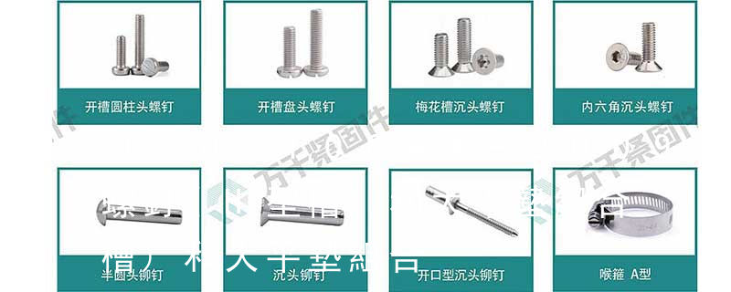 T型槽螺母 T-slot nuts 單頭螺柱 Single end studs 地腳螺栓 Masonry bolts 帶槽圓螺母 Slotted round nuts 端面帶孔圓螺母 Round nuts with drilled holes in one face 開槽平端緊定螺釘 Slotted set screws with flat