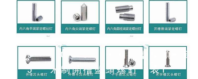 1)開槽普通螺釘多用于較小零件的連接。它有盤頭螺釘、圓柱頭螺釘、半沉頭螺釘和沉頭螺釘。盤頭螺釘和圓柱頭螺釘?shù)尼旑^強度較高,瑁在普通的部件連接上;半沉頭螺釘?shù)念^部呈弧形,安裝后它的頂端略外露,且美觀光滑,一般用于儀器或精密