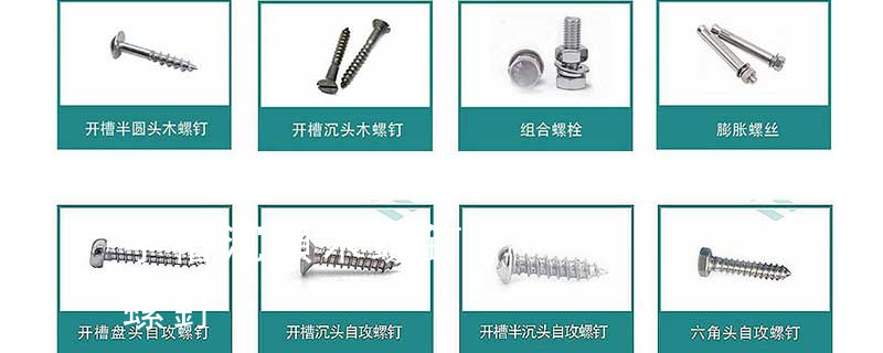 木螺釘有十字槽沉頭、十字槽半沉頭、十字槽圓頭、開槽(一字槽)沉頭、開槽半沉頭、開槽圓頭、六角頭等幾種,公稱直徑有1.6、2、2.5、3、3.5、4、5、6、7、8、10等系列,長(zhǎng)度有6、8、10、12、16、20、25、